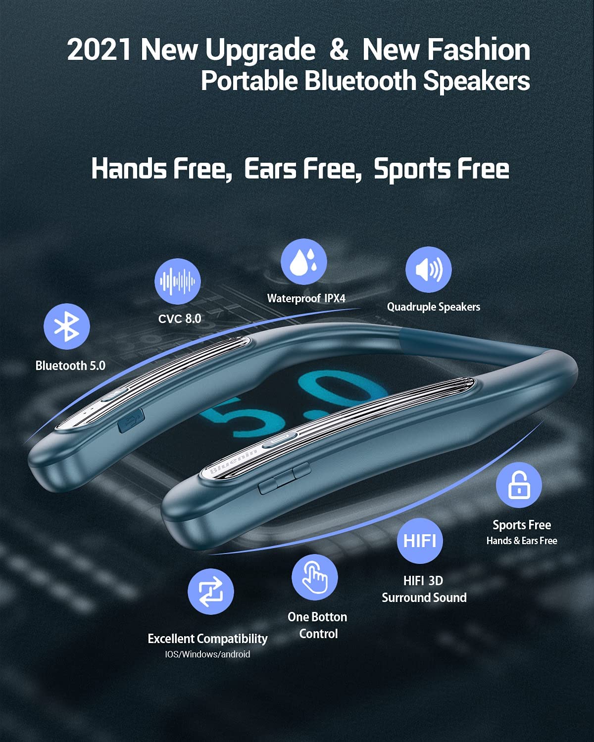 Bluetooth Speaker Bluenin Portable Bluetooth Speakers Wearable Neckband Bluetooth Speakers, Wireless Collar Speaker CVC 8.0 Noise Cancelling 3D Sound Personal Sport Speaker with Mic(Black) Rated 4.41 out of 5$27.99 -