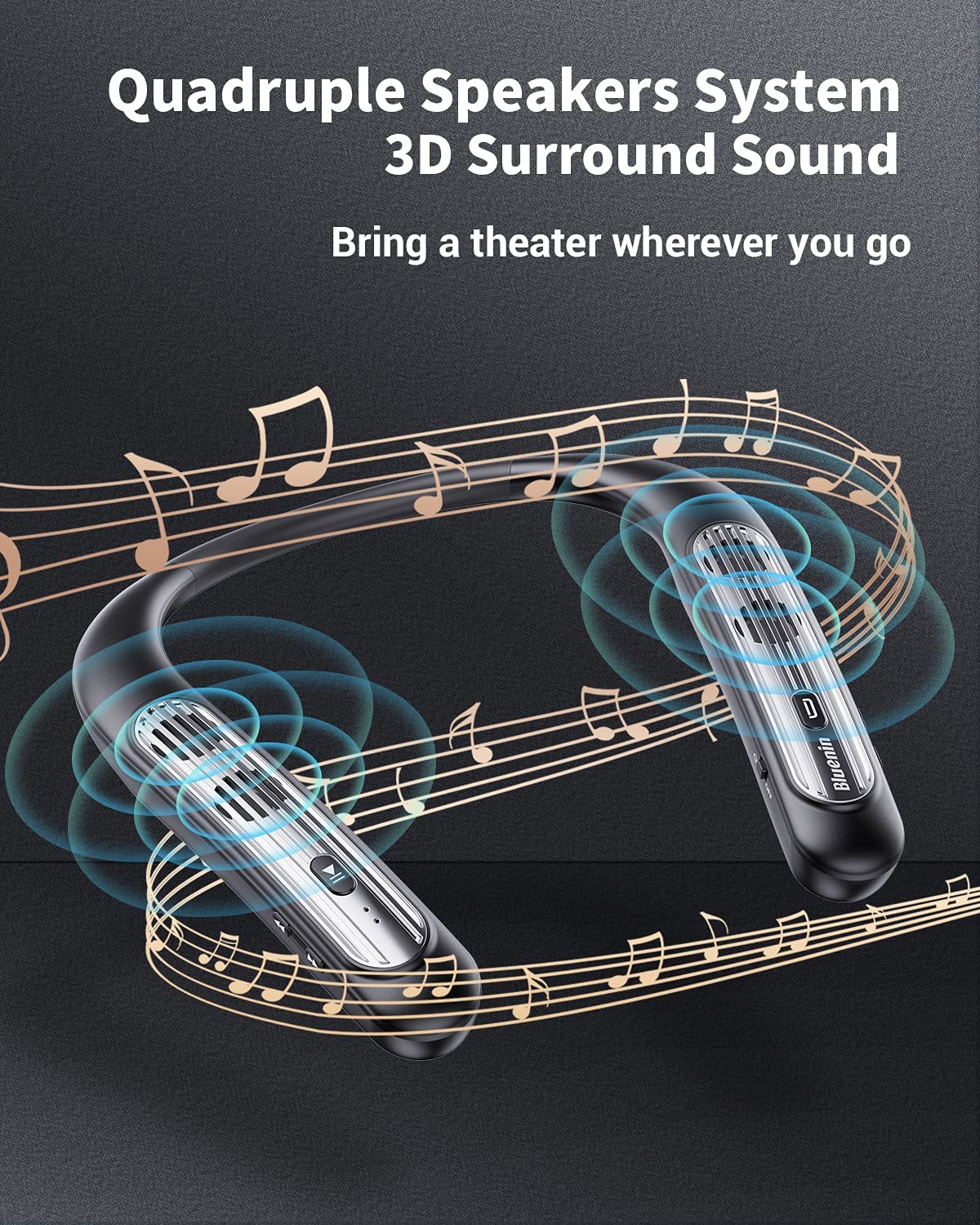 Bluetooth Speaker Bluenin Portable Bluetooth Speakers Wearable Neckband Bluetooth Speakers, Wireless Collar Speaker CVC 8.0 Noise Cancelling 3D Sound Personal Sport Speaker with Mic(Black)