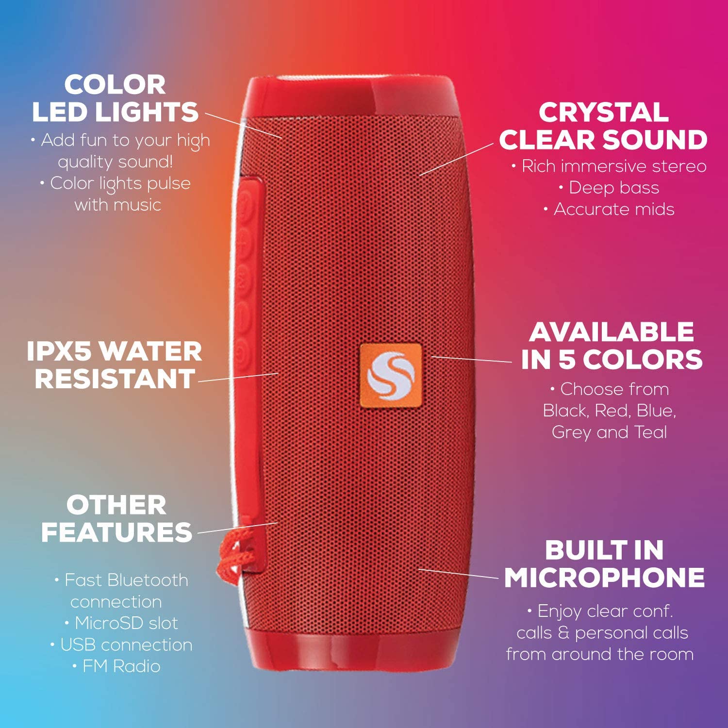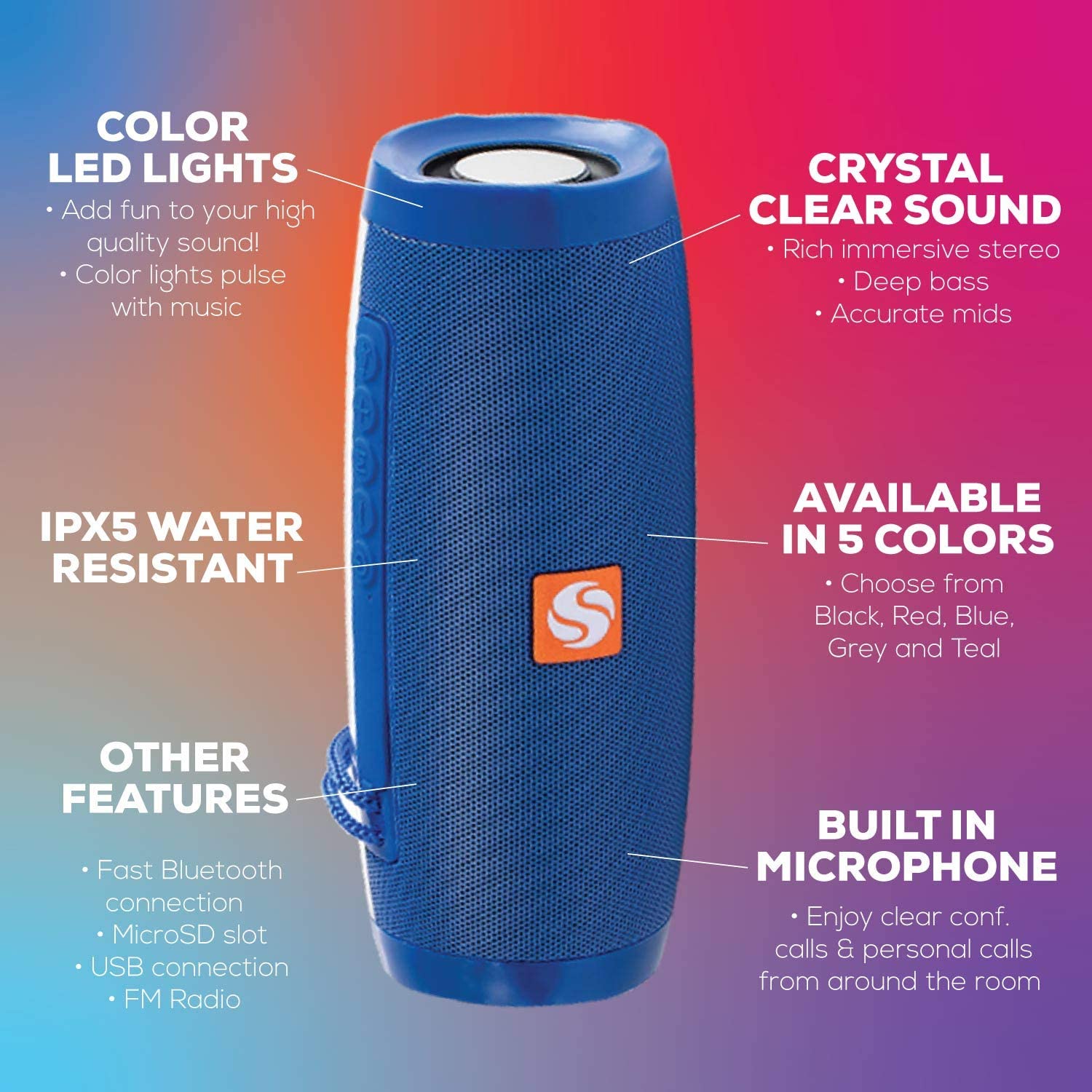 Bluetooth Speaker Portable with Color Lights, Wireless Ipx5 Waterproof Speakers from SilverOnyx, Loud Clear Hd Stereo Sound, Rich Bass Subwoofer, Built-in Mic, for Shower, Home, Travel, Pool – Grey